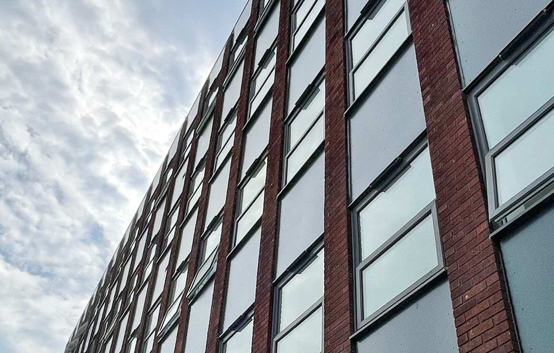 Our team had to remove the existing windows and EPDM membrane around them, then reinstall the existing windows & new EPDM back to the existing structure. Additionally, we designed, supplied, and installed 410 m² of aluminium spandrel panels. Afterwards, the windows were reinstalled, and the EPDM membrane was reinstated to the existing structure. We installed Spandrel panels along with all associated works. Finally, we reboarded, made good, and painted the internal reveals.