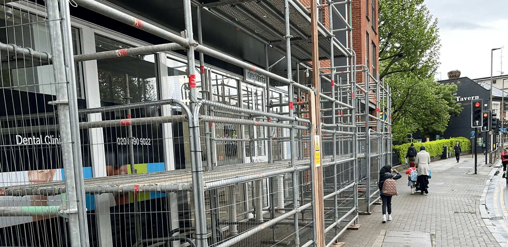 With a fully occupied residential building with parking accessed via an archway, diligence is required to ensure the access is not blocked unnecessarily. Along the front of the building are several business units requiring safe access for staff and clients. We’ve also ensured passersby can safely use the pavement during the project.