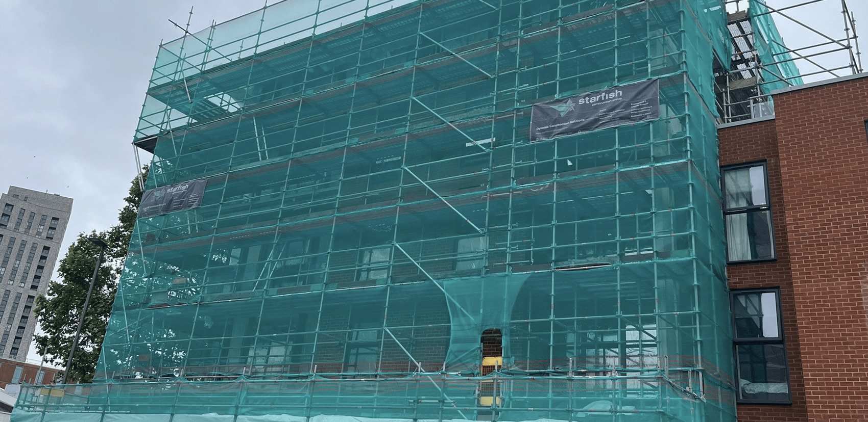 As a diverse construction group, Starfish Construction has an in-house Access and Scaffolding Division that designs and manages installations while adhering to strict Health and Safety standards. The project required an innovative scaffolding plan due to limited space around the site perimeter and restricted access points.