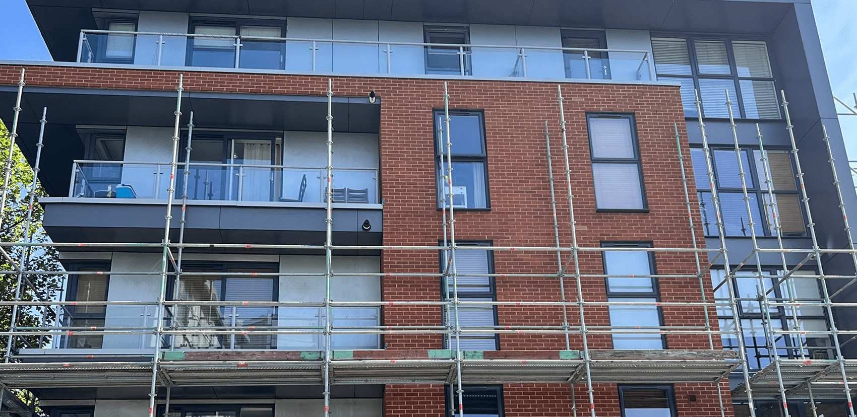 Once cleared, the installation of the new façade has commenced. This includes the application of new EPDMs and breather membranes, the erection of a new backing structure complete with fire breaks and insulation, and the installation of new aluminium cladding panels and pressed metal. Additionally, we conducted fire door surveys to ensure compliance with safety standards.