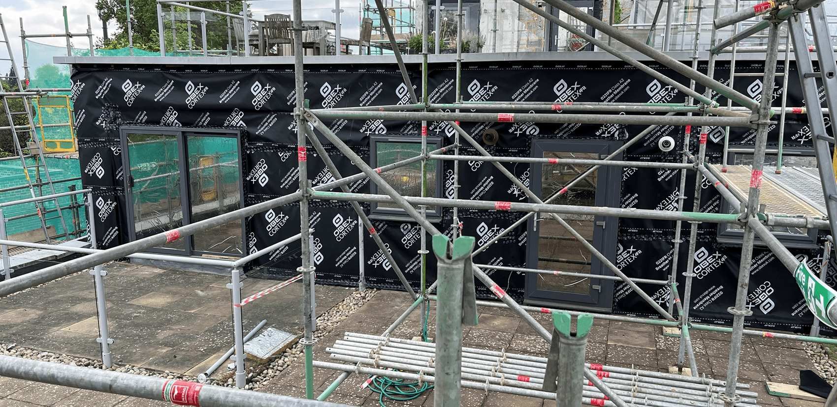 The first phase of this extensive project began with removing the existing cladding system, which included a timber backing system, HPL cladding, and EPDM.