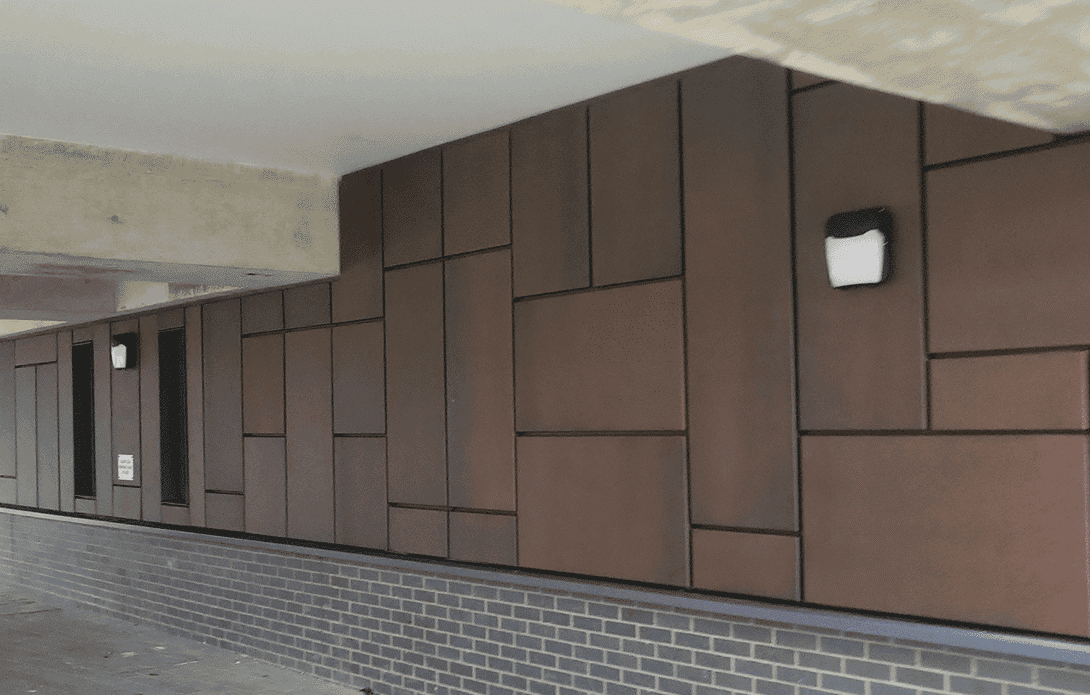 An excellent example of the value our commercial department brought to this project concerned the existing ‘bronze’ panels, which were specified and could not be changed, these panels were costly, and due to market price increases during the time, there was no cost certainty for the materials. We approached one of our supply chain partners to produce an ‘equal or approved’ option. Once installed, the 3 mm weathered bronze aluminium panels would match precisely the original panels.