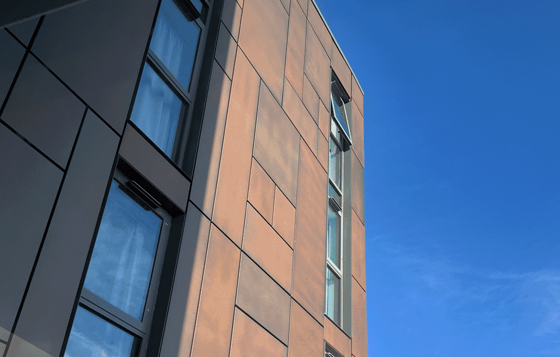 Not only did we have to satisfy our internal project delivery team, but we also had to meet the demands of all main external consultants. It’s always rewarding to see installation and interface junctions coming together mid-construction based on Starfish Construction’s design concepts, especially 3 mm Aluminium Bronze panels which look extremely impressive. Every bronze panel on this project has a different shade, finish and size. That said, all three rainscreen products aesthetically complement each other and provide an excellent finish to the project.