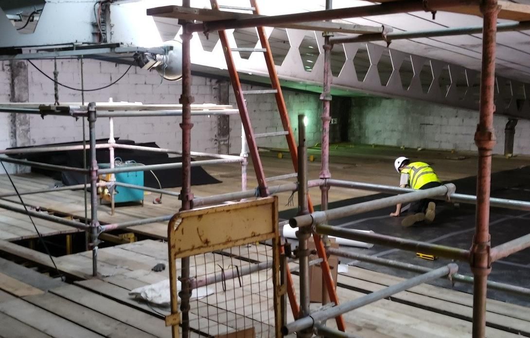 Once the scaffolding erection was complete, SEAS undertook enclosure construction to provide critical control over the prevention of dust associated with the removal works. The enclosure was constructed from heavy-duty impact protection correx, 1000-gauge polythene, heavy-duty PCL tape, spray glue and staples fixed to a timber frame for enclosure support. The roof structure was pre-cleaned and sheeted out of the removal area.